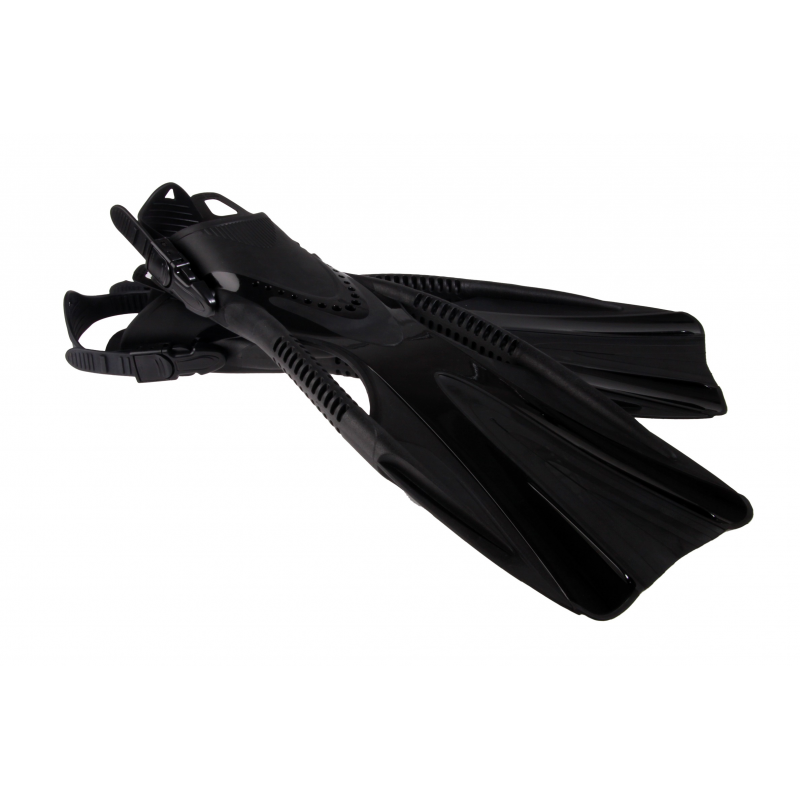 A diferencia de las aletas diseñadas para utilizarlas en una posición horizontal de natación, este par de aletas HART está especialmente diseñado para un empuje desde una posición vertical, que coincide con la posición de aleteo en un pato de pesca. Cierre trasero regulable que permite utilizarlas con calzado.