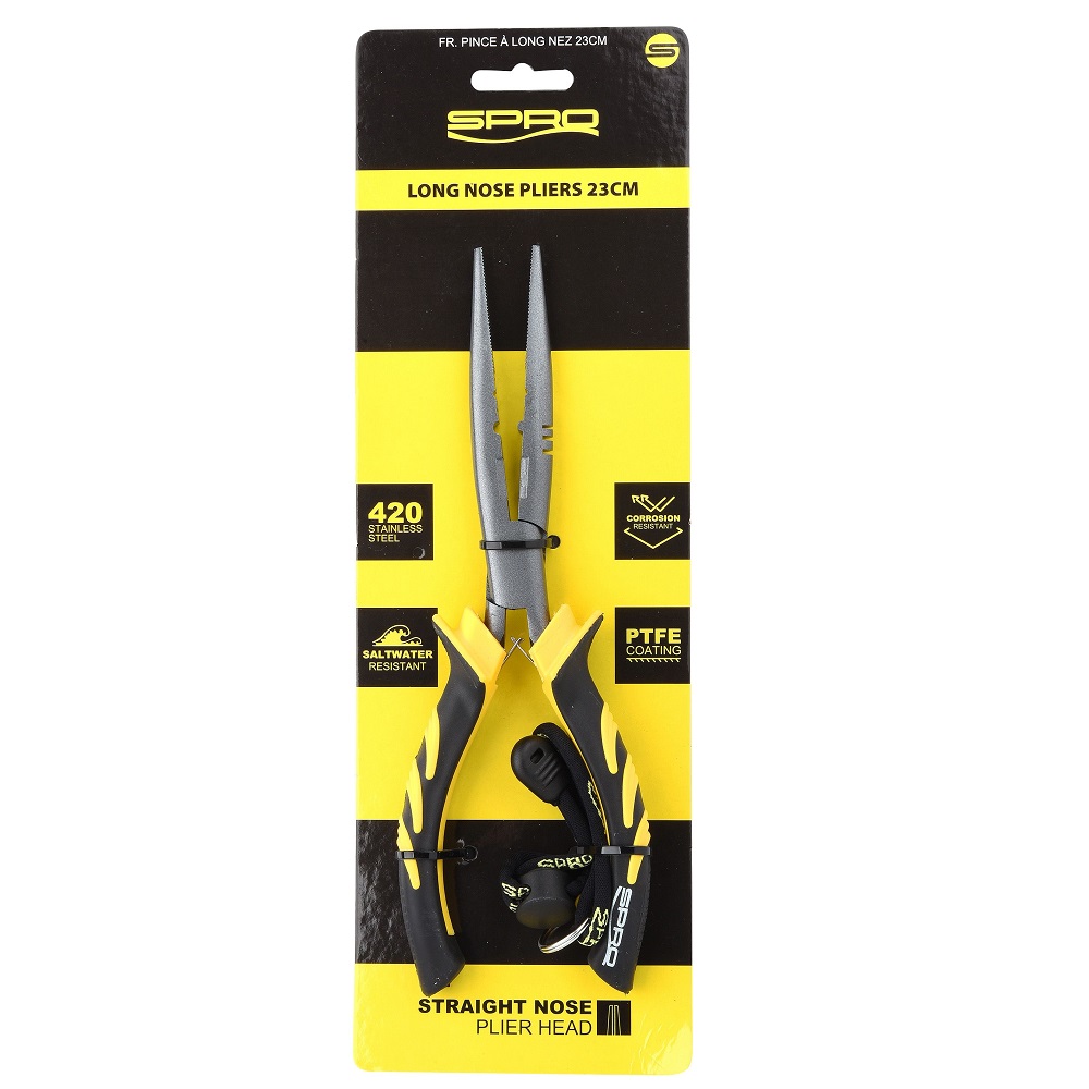 Alicates de punta larga de 23 cm. En acero inoxidable, resistente a la corrosión.