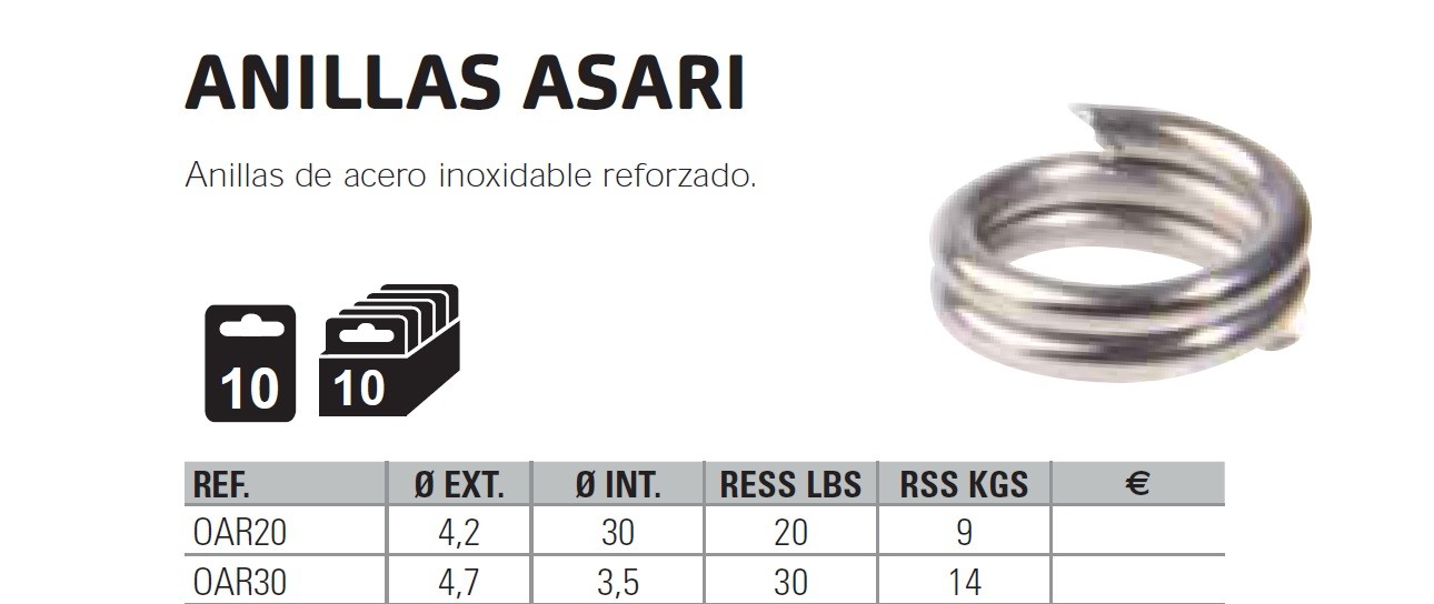 Anillas de acero inoxidable reforzado. Blister 10uds.