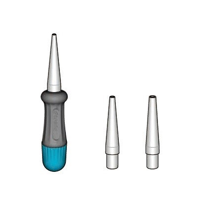 Anudador cónico para realizar el nudo de remate de la mosca de forma sencilla,esta compuesto por 3 puntas intercambiables de diferente tamaño para ajustarse a todos los anzuelos.
