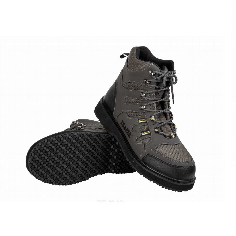 Los zapatos de vadeo Creek TRAPER son un calzado excelente, duradero y de fabricación estética a un precio bajo. Una suela antideslizante dura y gruesa protege los pies de las molestias del fondo rocoso. La parte superior rígida del zapato protege perfectamente el pie contra torsiones. Los zapatos tienen un sistema de encuadernación rápida. El set incluye 24 tornillos antideslizantes con llave.