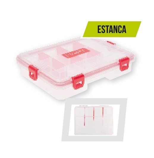 Caja de plástico estanca con compartimientos movibles. Medidas: 220x165x50 mm