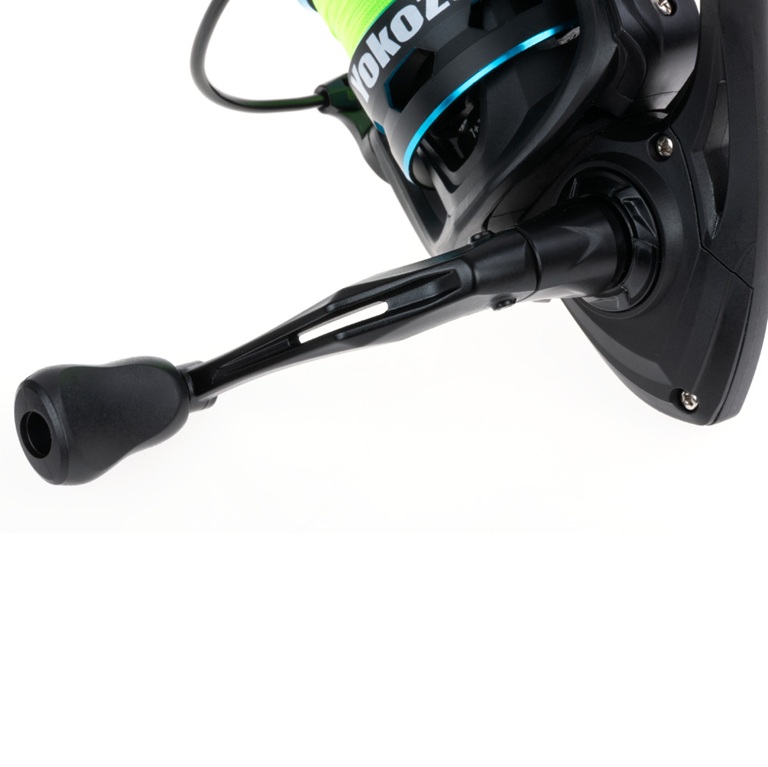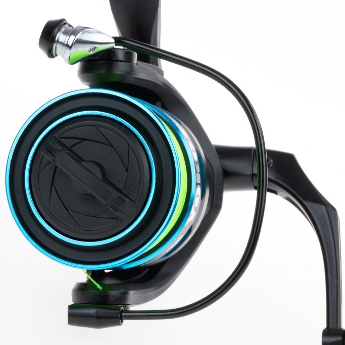 Fabricado en grafito resistente a la corrosión. Tecnología de 2 rodamientos: 1 rodamiento de anti-retroceso infinito y 1 rodamientos de bolas. Freno frontal microajustable con muelle. Rotor equilibrado. Guíahilos sobredimensionado. Bobina de aluminio con hilo trenzado incluído.