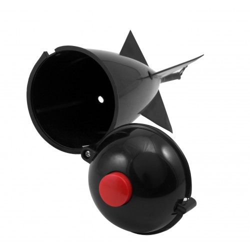 Cohete cebador para carpfishing. Permite al pescador cebar en la zona donde va a realizarse la acción de pesca, tamaño grande , 17cm. Gran capacidad de lanzamiento y precisión, una vez llega al agua suelta el cebo que se ha colocado en el interior y se recupera fácilmente por la superficie incluso con viento.