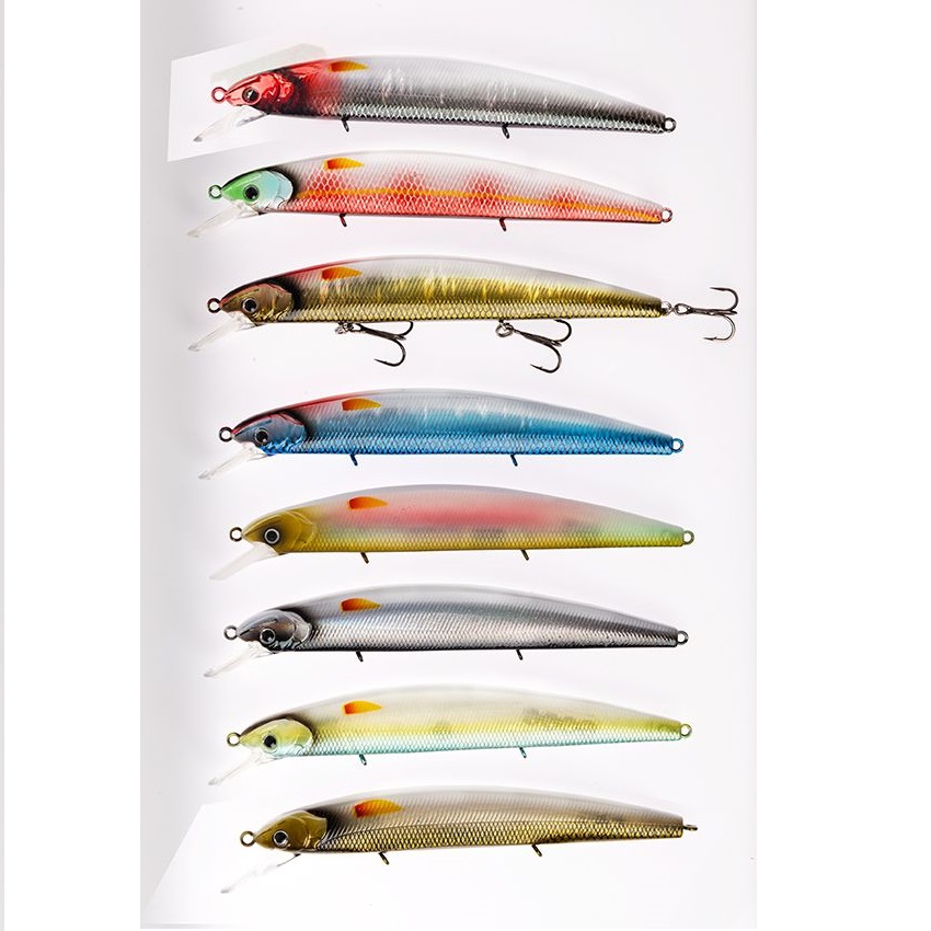 Jerk bait suspendido, ligero y estilizado, pero con gran capacidad de lance gracias a su transferencia interna a bolas. En recogidas lineales tiene una frenética natación con un cerrado