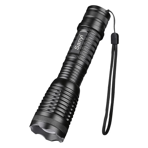Diseño pequeño y compacto con efecto de iluminación de 5 modos, Zoom T6 Flashlight, Distancia de la iluminación: 200-500m. Fabricada en aluminio, resistente al agua. Funciona con 1 pila (18650) ó 3 pilas tipo AAA (no incluidas). Tamaño 13,5×3,9cm.