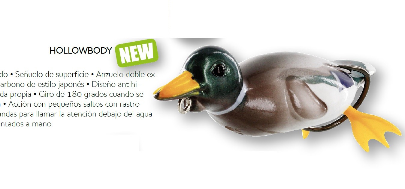 Danny the Duck en la versión de cuerpo hueco, es la arma perfecta para los grandes basses resabiados. ¡Se volverán locos por este patito! Diseño antihierbas para ser pescado en coberturas espesas. ¡Imagínate un gran bass haciendo desaparecer a Danny delante tuyo! Talla 9cm. Peso 18gr.