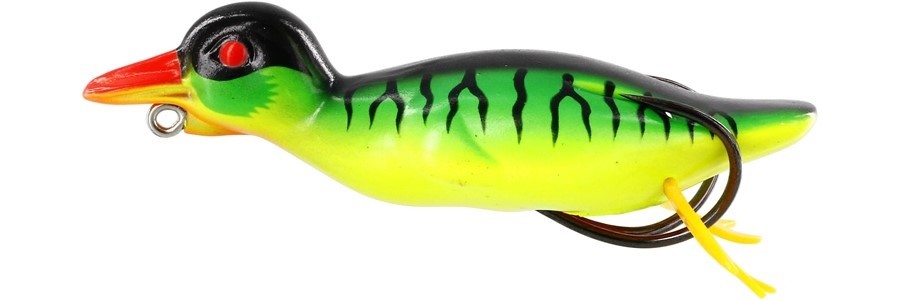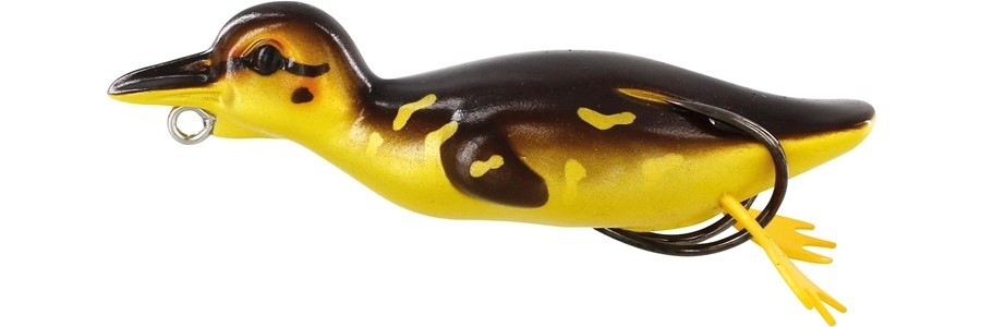 Si le das golpes demuñeca, Danny oscilará 180 grados en bruscos giros cortos y se quedará más tiempo en el punto caliente, péscalo rápido o lento, de cualquier manera puede crear esa acción de saltitos con un rastro de burbujas único como un patito huyendo, el pico también añadirá un chapoteo frontal único, ¡no olvides hacer pausas! Sus patitas blandas añaden una atracción extra con vibraciones debajo de la superficie. Este es un señuelo genial y divertido para pescar. Gracias a su cuerpo hueco, Danny se aplastará alrededor del anzuelo doble con un ratio elevado de clavadas. ¡Los depredadores esperan al blando de Danny, vivo o muerto! ¡Cua cua!