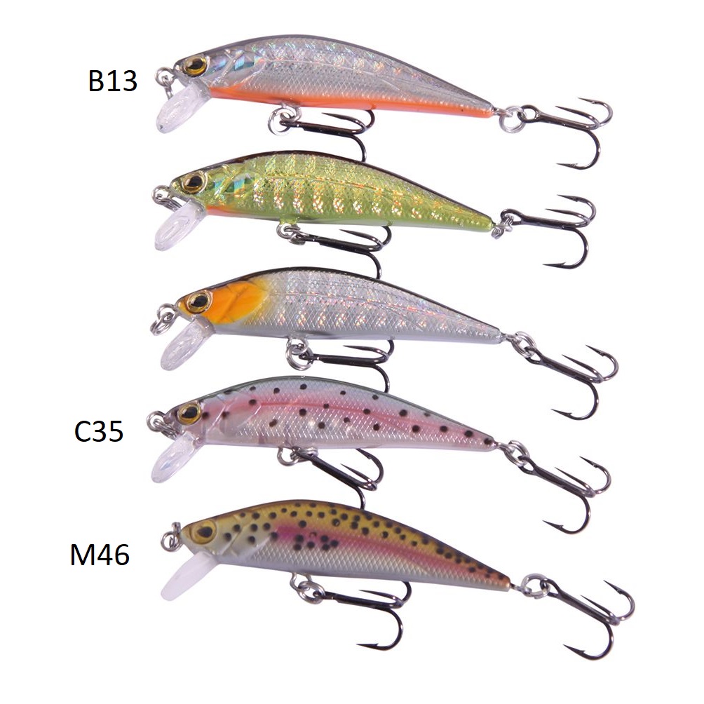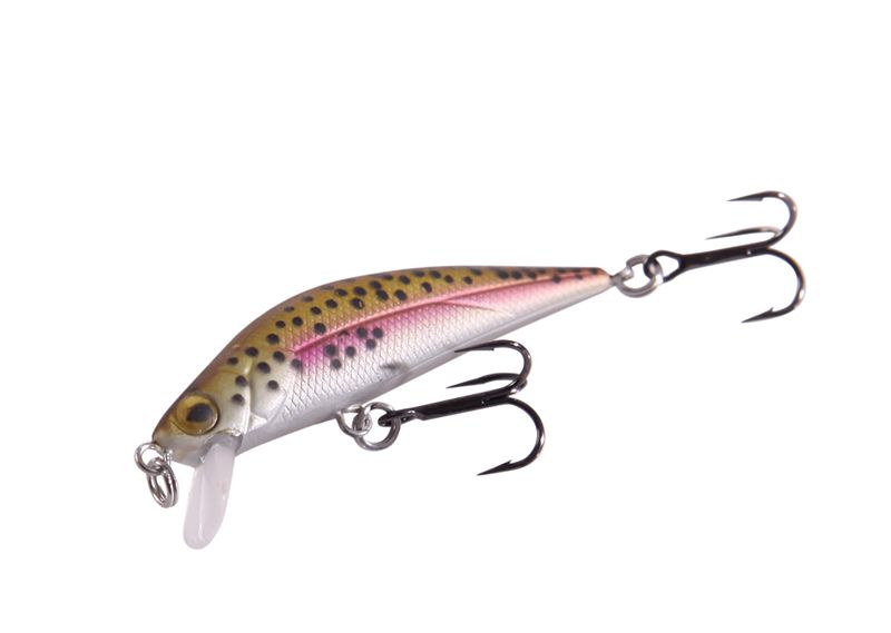 Pequeño minow flotante con un rolling muy sugerente y moderado wobling, capaz de sacar de sus escondrijos a las mejores truchas. También se muestra muy eficaz con bases y percas, e incluso los barbos le dan caña…nada justo por debajo del agua, con lo que podemos emplear en cualquier sitio sin problemas.