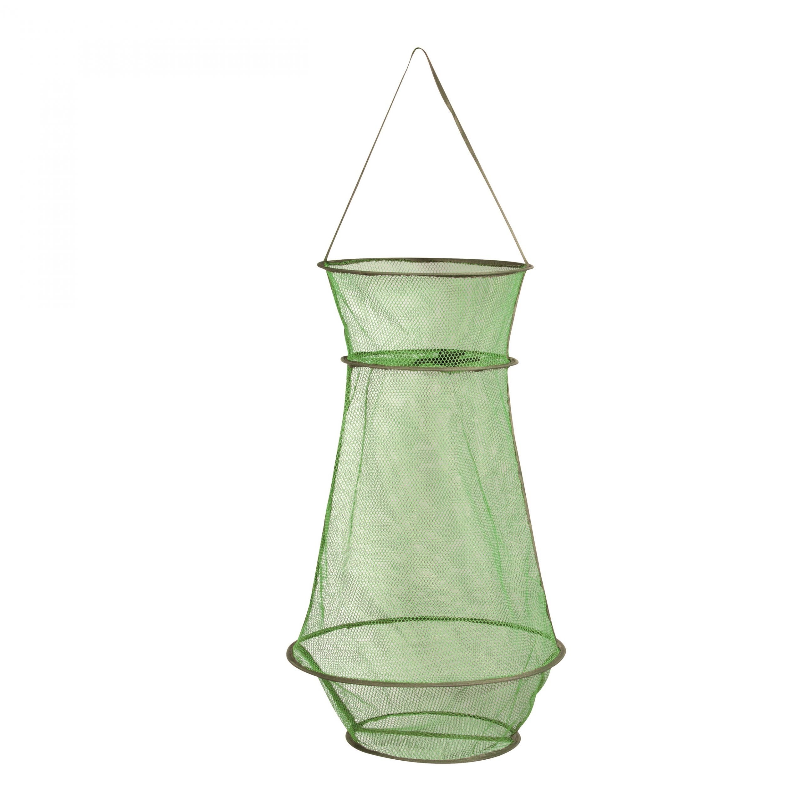 Malla plastificada para impedir el enganche con las espinas de los peces. Cierre de seguridad para evitar la salida de peces una vez que estén dentro