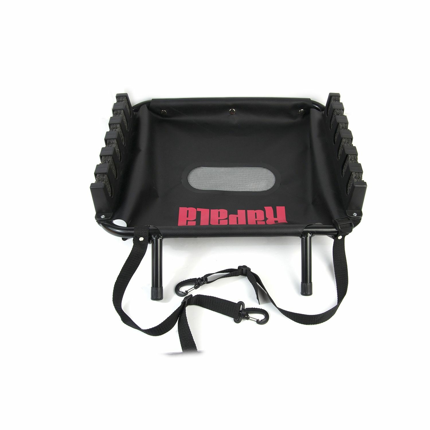 Se adapta a cualquier pato, de montaje fácil y rápido, le permitirá tener todas sus cañas montadas en un santiamén. El sistema de retención de caña de espuma de alta densidad preformado se adapta a todos los diámetros de cañas y le permite cogerlas o dejarlas con una mano. El contenedor de lona de PVC tiene un drenaje de agua en el centro (red), que es el lugar perfecto para dejar caer algunos señuelos antes de los cambios.