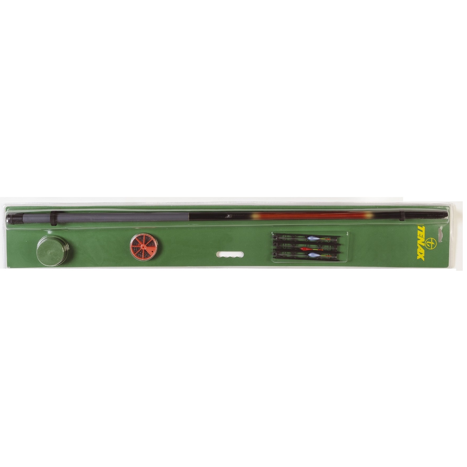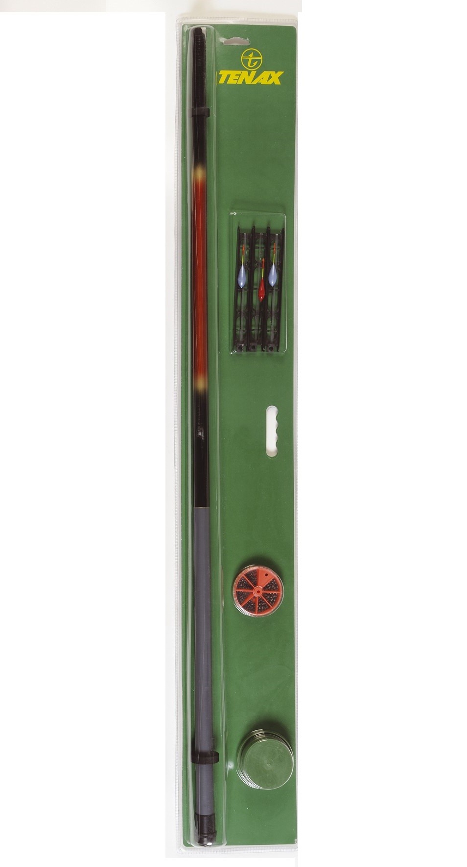 Conjunto de pesca de Coup, Compuesto de caña en fibra de 4mt. tres aparejos con flotador, caja de plomos tamaños surtidos y caja portacebos.